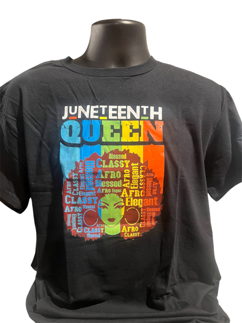 Bold and vibrant, this 'Juneteenth Queen' design celebrates the power, beauty, and resilience of Black women. A statement piece for those who want to wear their pride boldly.